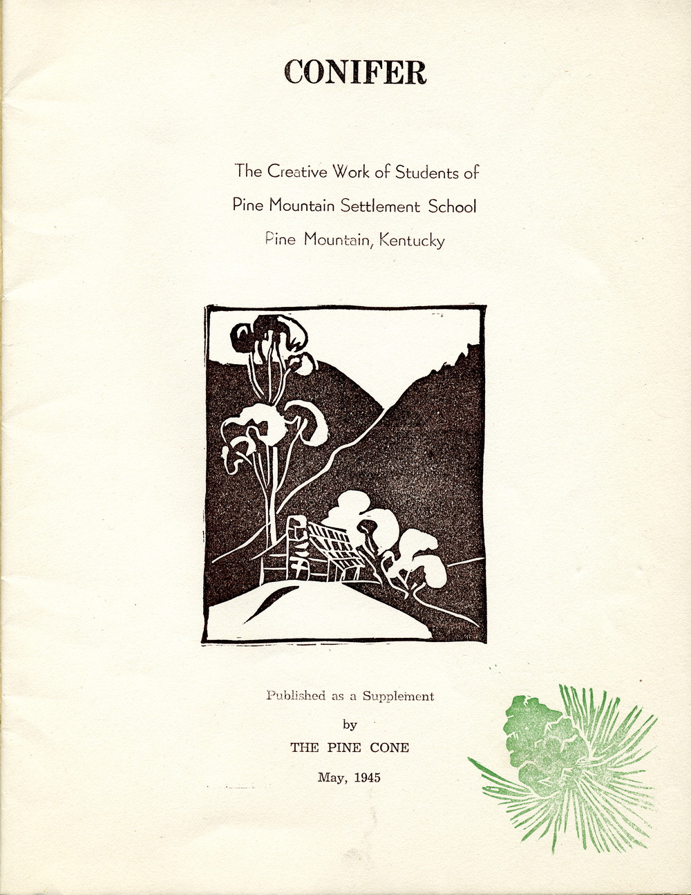 Description The literary publication of the school during the boarding school year of 1945.  Written by students and containing fiction, prose, and poetry. The first creative writing publication written and printed by the students at Pine Mountain Settlement School. First published in 1930 as the Pine Cone and later replaced by Conifer, the volumes in the early years duplicate one another in part and issue numbers can be confusing, but the run of the periodical is largely well documented by volume and issue.
