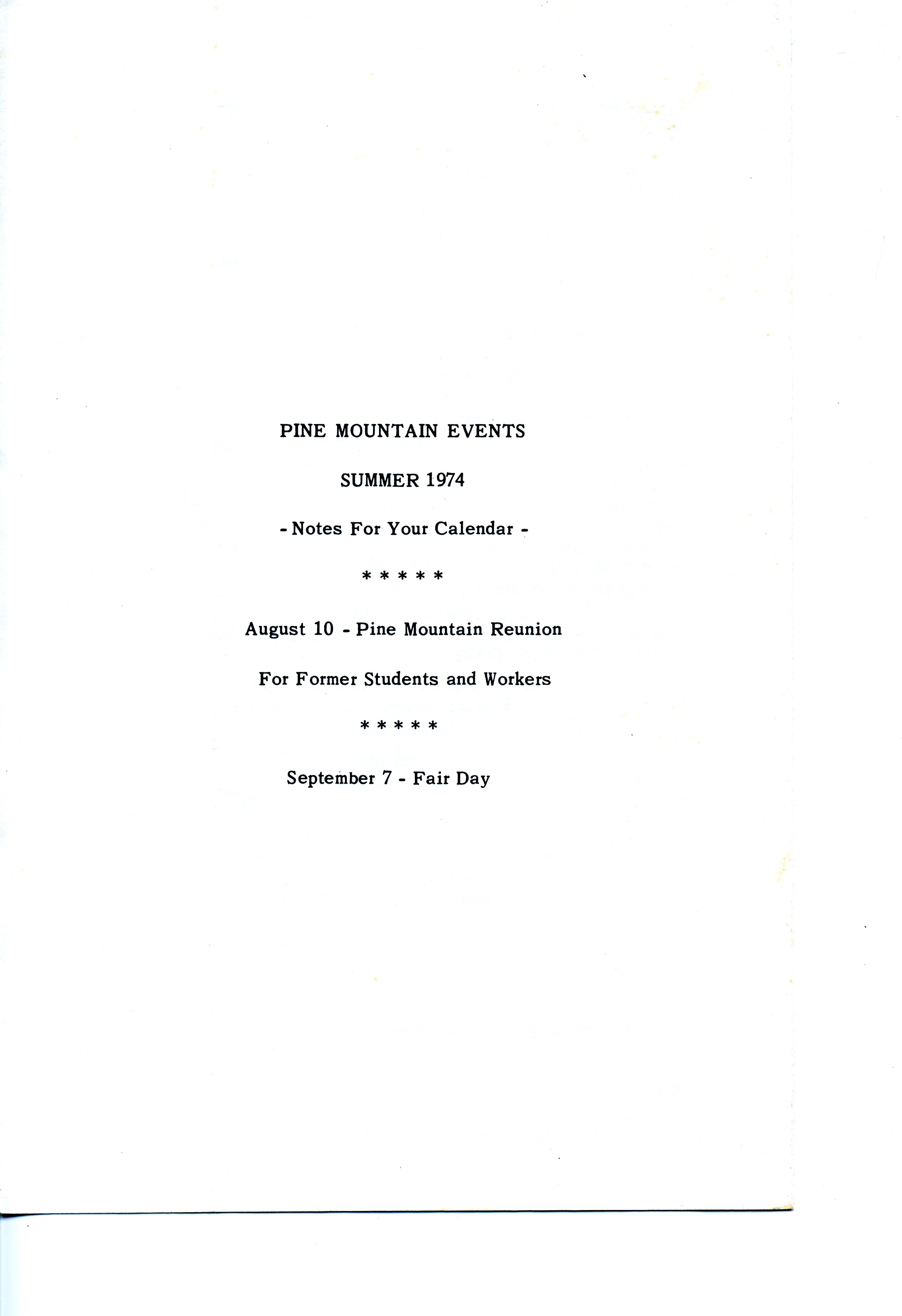Homecoming! The idea came from some of the old students who wanted to have a get-together for former students and workers. The invitation brought more than a hundred [attendees]. Every decade of Pine Mountain’s history since 1913 was represented.