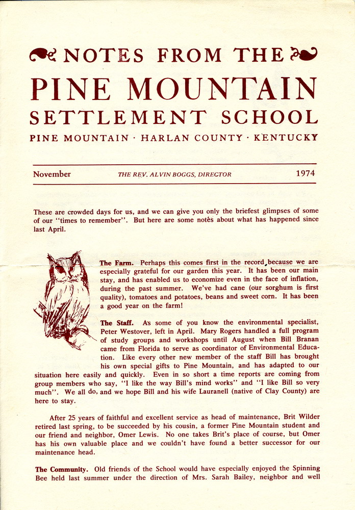 “Notes from the Pine Mountain Settlement School”