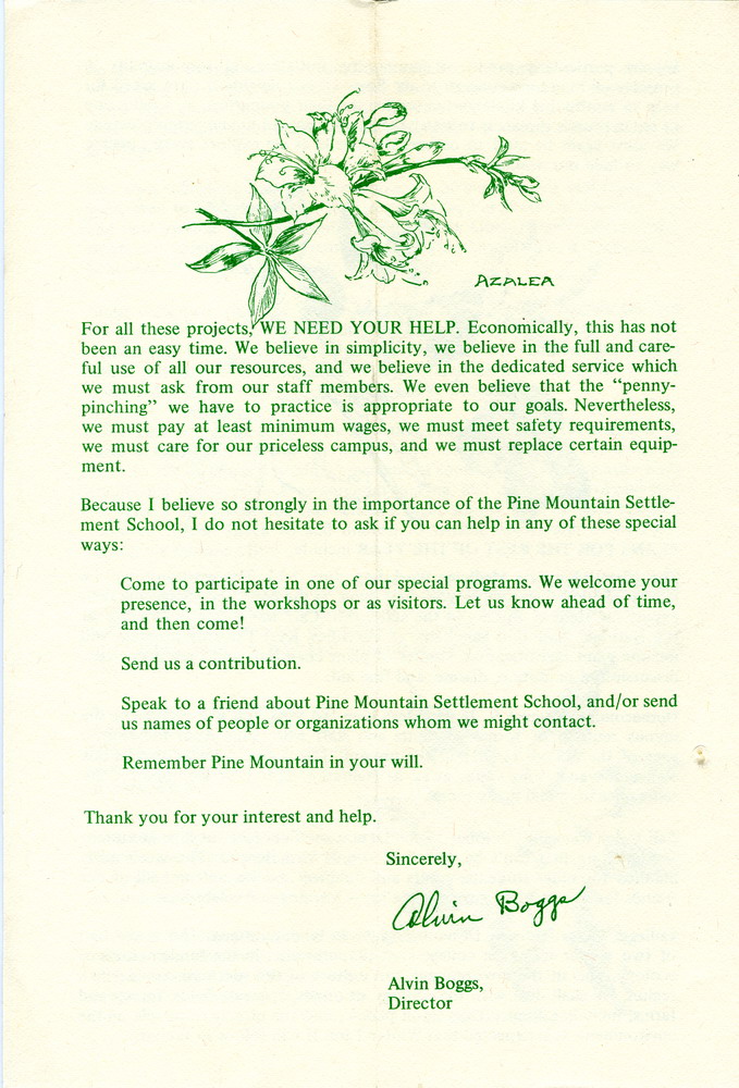 NOTES – 1975 JUNE: Environmental Program ; special weekends ; playgrounds ; community ; building maintenance ; gardens ; gifts in kind ; greenhouses ; farm ; sorghum ; cattle ; sheep ; Spinning Bee ; Appreciation Dinner ; Mountain Folk Festival ; Union Church ; swimming pool ; Chapel ; Mountain Medicine Workshop ; Ellwood Carr ; Homecoming ; Fall Color Weekend ; College Winter Term ; ecology ; Rev. Alvin Boggs ; drawing ;