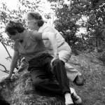 Stone at the School can be found in flagstone walks and simple stream stepping stones. Rocks are often referred to as residing deep in the woods, where they are natural monuments with trillium tops and gentle fern and lichen-laced sides. They are places to sit for a stream-side picnic or a personal reverie. At Pine Mountain, almost no one is without a stone — or some affection for a “rock.” The Playground rock beside Isaac’s Creek is one of the most iconic rocks at the School. The large rock (no one calls it a stone) is nearly encased in the root of a giant poplar tree and provides many nooks to play or sit, or cut hair.