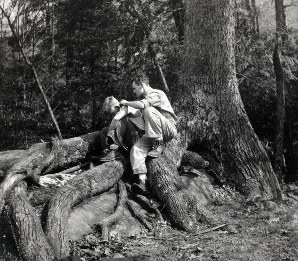 Browning was also assisted by Leon Deschamps, a Belgian whose training as a forester allowed him to address both the silviculture and farming needs of the school. Browning and Deschamps overlapped from 1920 until 1927 when Deschamps left Pine Mountain.  Under the guidance of Browning and Deschamps, the farm had grown in productivity and, like the previous farm workers, these two farmers largely developed the land according to Miss Pettit’s plan. Deschamps, when he was left in charge of the farm largely followed the planning of Pettit and Browning but when he left in 1928 the direction of the farm went through a series of short-term farmers and some of Pettit practices and vision were set aside. A Mr. Morrison, of whom we know little, followed Deschamps and he was quickly followed by Mr. Boone Callahan who became one of the legendary members of the staff and who was also well known as a wood craftsman. Boone Callahan, one of the many Callahan Family children brought to the School in the very early years and Brit Wilder were among the first Students to come to Pine Mountain.  In the 1943 special edition of Notes, “Our Mountain Family,”  the contributions of Callahan and Wilder are noted