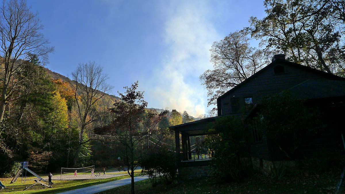 In October 2016  the Pine Mountain was again on fire.  A series of small fires deliberately set along the Little Shepherd Trail grew into large fires that crept down the mountain. Today no small boys were sent up to meet the growing danger, but the small staff watched warily as the forest cleared its under-story and discussions centered on the process of making ready for the seeds of Spring. Yet, with each increase in the wind the observers grew more anxious and small groups went into the forest to combat the flames as they steadily marched down the mountain toward buildings.  Shortly a misting rain fell and everyone sighed relief yet many paused to consider and to wonder what it is in our common human community that still finds pleasure in setting things afire.