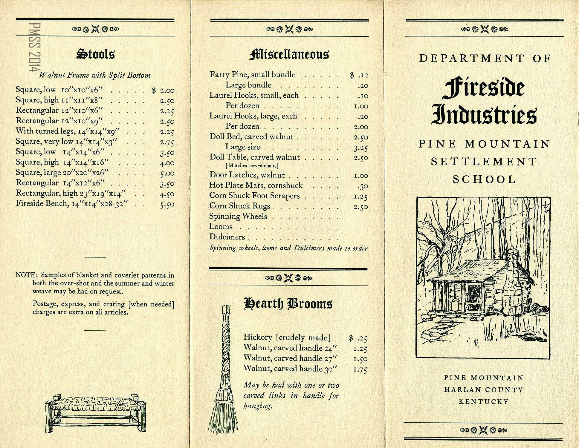Through Pine Mountain’s efforts and the support of the broad-ranging Fireside Industries, a strong program of support for the Appalachian craft of weaving was developed and the practice was strongly revitalized in the 1930s and 40s. In many environments, during the 1930s and 1940s the idea of a “cottage industry” which is characterized by contracted work completed at home and then marketed through a central agency, was a developed and viable economic venture. In the case of Pine Mountain, the idea was not new and was not exploited by the school so much for commercial reasons, but was incorporated into the educational program and into their primary goal of building “community.”