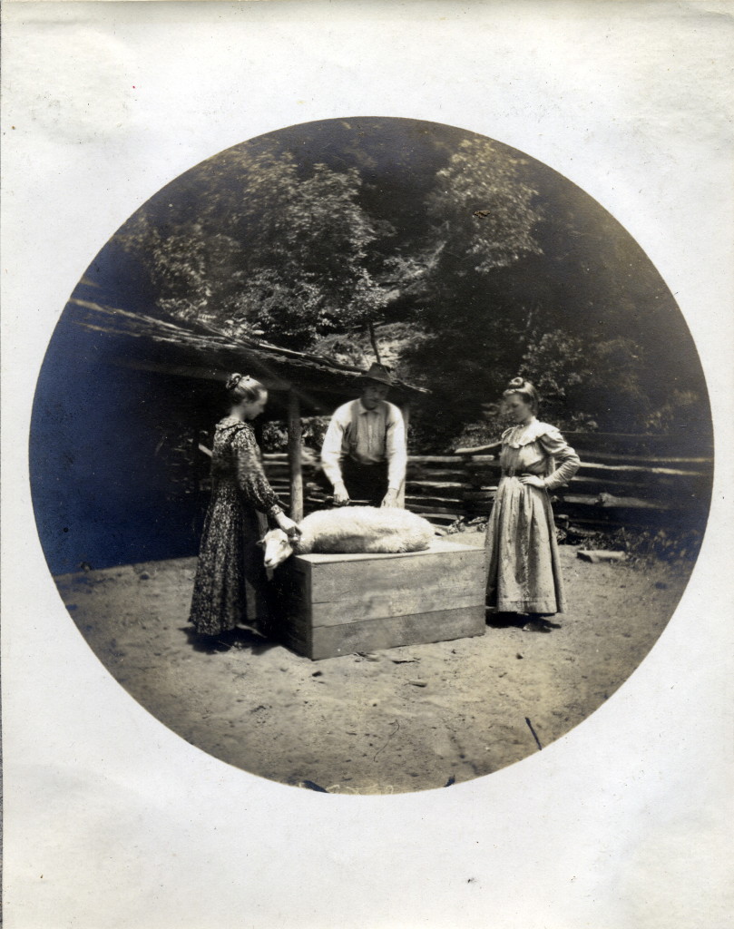 The photograph of Aunt Jude Turner feeding her sheep, seen above, is one of the most iconic photographs in the Pine Mountain Settlement School collections. Scattered throughout the early photographs taken at the School there are images of sheep, suggesting that they were an integral part of the landscape and life in the early years of the north side of the Pine Mountain. This image captures the essence of “romantic” sheep raising. But, was it all bucolic?